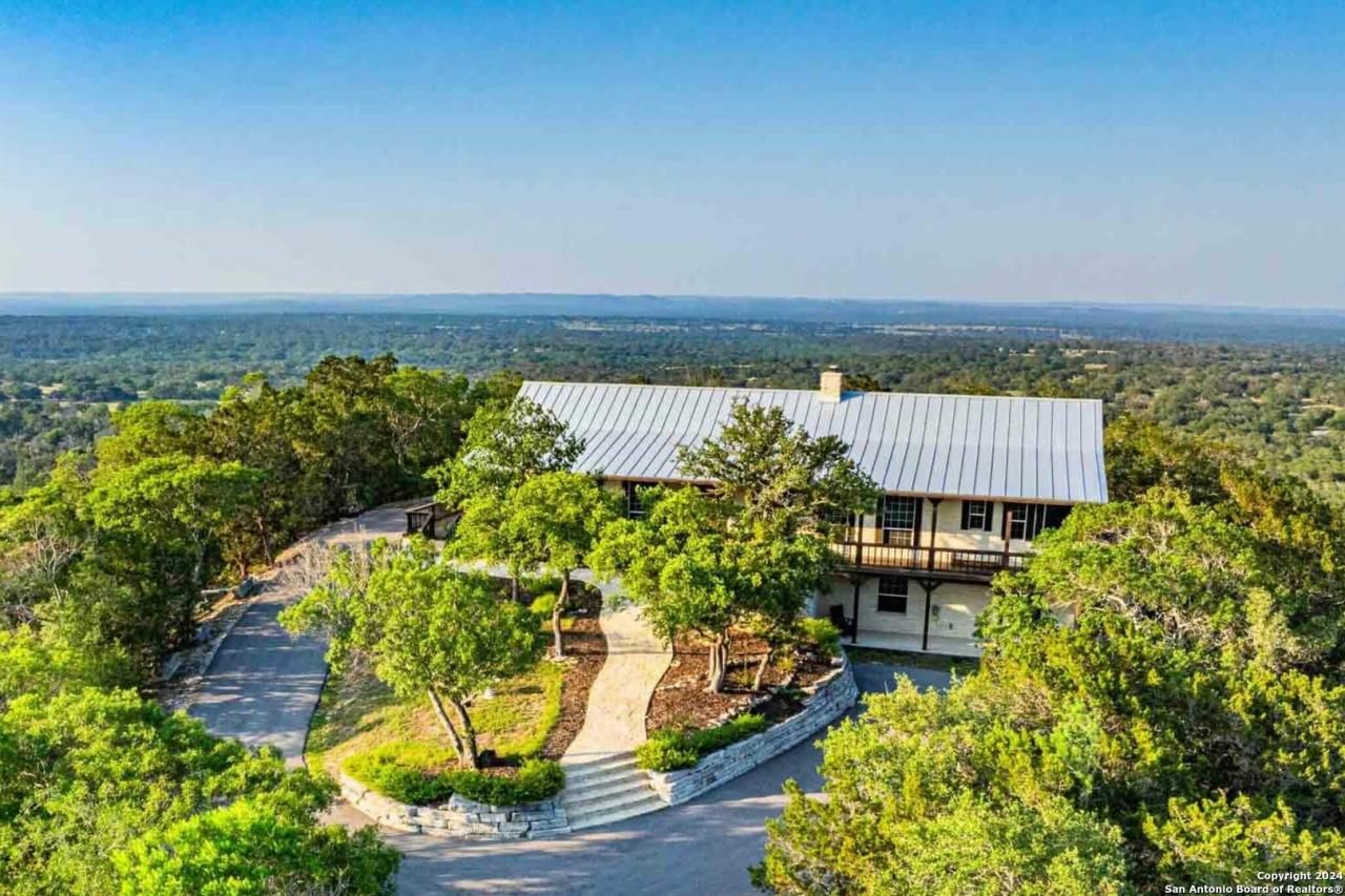 MAJOR PRICE REDUCTION OF OVER $750,000-Three Peaks Ranch features impressive views encompassing 309+/- acres just north of Boerne. The ranch displays rolling hills and abundant large-mature live oak, pecan, mesquite trees, native grasses, and wildlife. A nice-paved driveway leads you to the main house, perched atop the highest hill. The five-bedroom/three-bathroom home offers an inviting covered front porch and a large balcony deck that serves as an excellent vantage point to sit back and enjoy long-range views. A spacious kitchen, a comfortable living area, expansive windows to take in the views, a fireplace, and other amenities make this the perfect permanent residence or weekend getaway.
