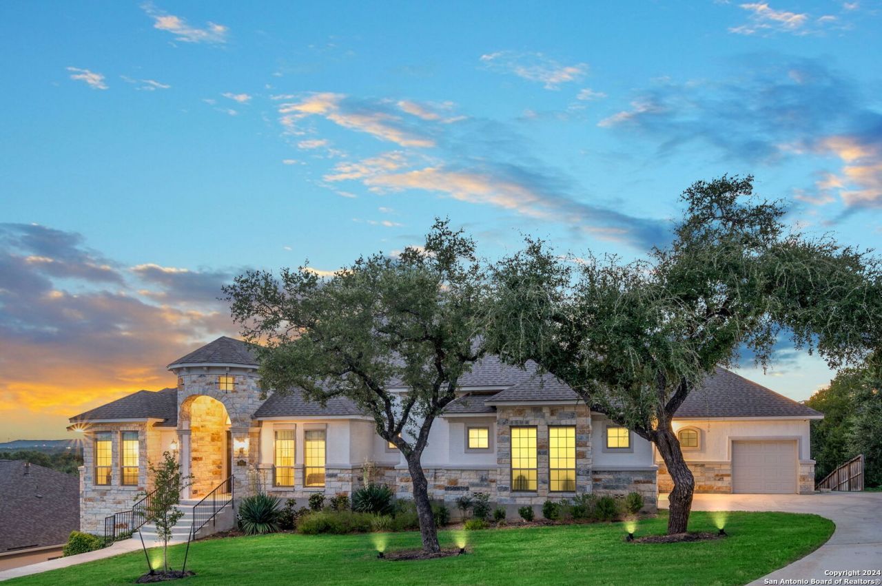Welcome to this immaculate near-new custom 1 story home nestled in the desirable Johnson Ranch community. This home is situated on a premium elevated lot without backyard neighbors and amazing hill country views! Every detail has been meticulously curated, showcasing top-of-the-line upgrades that elevate this property to the pinnacle of luxury living. Soaring ceilings welcome you as you enter and continue with an airy, open-concept with abundant natural light throughout the home. The property features three bedrooms, a study, large game room, and a spacious three-car garage. The primary bedroom and spa-like bath provide a tranquil retreat, perfect for relaxation. All windows have been fitted with custom motorized shades that can be accessed through your app. Enjoy outdoors with a large covered patio that includes a gas grill, griddle, sink and outdoor TV. Discounted rate options and no lender fee future refinancing may be available for qualified buyers of this home.