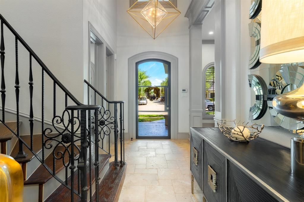 This exceptional custom home features a classic design and architecture within the desirable gated community of The Gates of Prestonwood, just minutes from the Tollway. Master bath and jack and Jill bathrooms remodeled Dec 2025, This beautiful home showcases refined features such as elegant hardwood floors, a striking entryway, and a grand staircase. The study, kitchen, and dining areas seamlessly extend to a spacious covered outdoor entertainment area, which includes a custom pool, synthetic turf, a built-in grill, 2 fireplaces. On the second level, you'll find a versatile room for crafts, exercise, or gaming, 3 secondary bedrooms, 2 full baths, and a custom bar. The luxurious master suite with custom walk-in closets with built-ins, a comfortable seating area, and a large shower. three-car garage, and a side drive situated on a quiet street next to a cul de sac more that 575k in upgrades make this house a MUST SEE!!