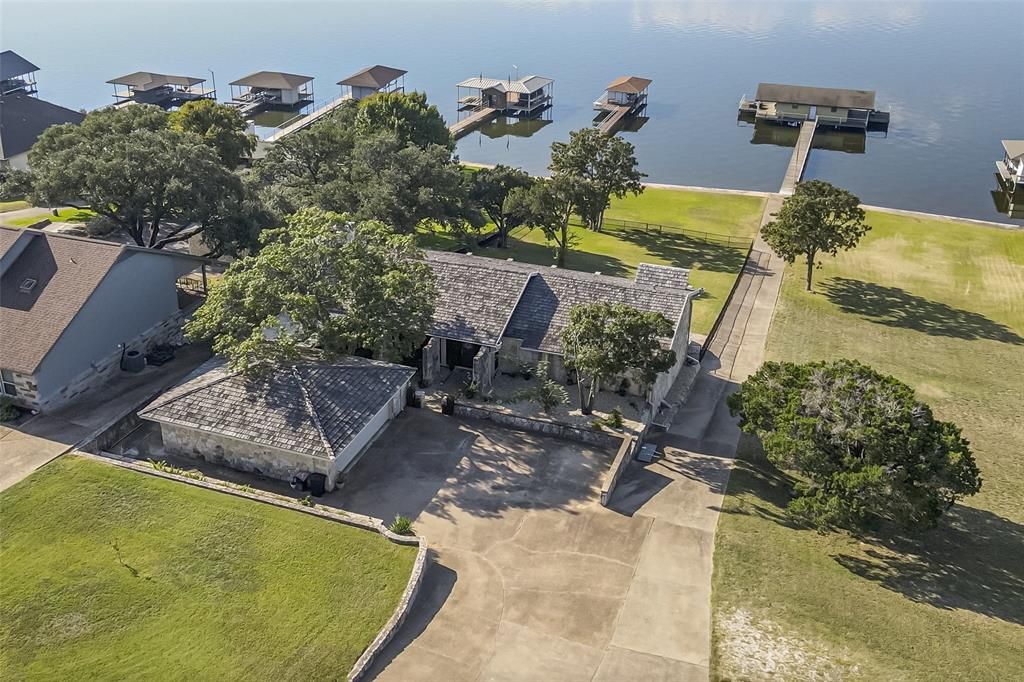 A rare opportunity to own a truly one-of-a-kind waterfront home on the main body of Lake Granbury, located in the highly desirable, gated golf and lake community of DeCordova Bend Estates. This custom-built home by Bill Church was owned by the same family until 2022 and sits on a hard-to-find ¾-acre lot with walkout main body water access. Inside, the home features two oversized living areas with stone fireplaces, high ceilings, and floor-to-ceiling windows offering stunning lake views from nearly every room. The kitchen and bathrooms have been beautifully updated while maintaining the home’s original charm, and the newly remodeled primary suite includes a spacious walk-in closet, new flooring, a all new primary bathroom, office space and lake views. A large, newly built laundry room adds extra storage and functionality. This home is perfect for entertaining and holidays, the home offers, full length upstairs decks with multiple sliding glass doors for seamless indoor-outdoor living and huge rock patio perfect for entertaining or just enjoying the views. A fully enclosed oversized double boat dock with twin entertaining decks for both sunrise and sunset views and offers all new electrical, new boat lifts, new flooring and doors. New roof will be completed at closing allowing buyers choice of color with acceptable offer. Most updates were completed by locally renowned architect Brian Gaffin. Floor plan, full update list, and survey available in the transaction desk. Virtual tour is available.Please note the vacant lot next door is not included but can be purchased additionally. DCBE is a gated community, and an agent is required for entry. All information deemed reliable but not guaranteed; buyers and buyer’s agent to verify all details.