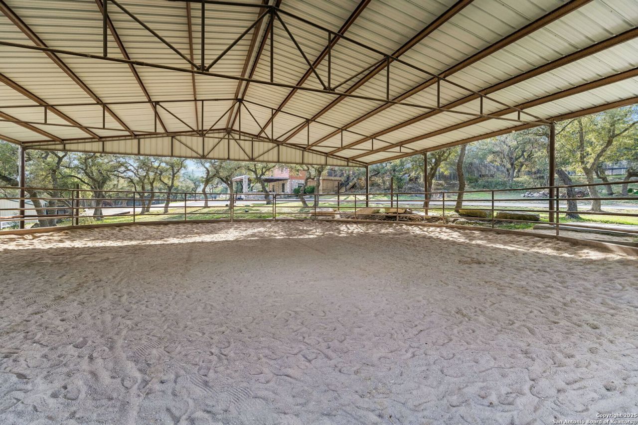 ***OPEN HOUSE SATURDAY MARCH 7th from 12:00-2:00pm***Turn-key equestrian facility in Bulverde, TX, offering an exceptional combination of professional horse amenities and resort-style living. The property features a main barn with 11 stalls (concrete aisle, office, tack room, 3/4 bath), a separate barn wing with 7 stalls, large tack room and foaling stall, plus additional stalls with permanent runs. Equestrian improvements include a covered arena (88 x 120) with sprinkler system and excellent footing, an uncovered arena (88 x 50), large covered round pen, extended covered paddock area, multiple turnouts, fencing, gates, and waterers. A two-story, climate-controlled viewing lounge offers approx. 1,800 sq ft. Additional improvements include a 1,100 sq ft 2-bedroom apartment, hay barn, shavings building, trailer building, tool shed, multiple portable shelters, dog runs, RV/septic infrastructure, and paved driveway. Main log cabin-style residence featuring an open floor plan with three bedrooms, two and a half bathrooms, a large converted garage, and a loft. Enjoy outdoor living with a screened-in room over the pool, outdoor kitchen, Spa, water feature, custom deck and railings. Rare opportunity to own a fully developed, income-ready horse property with extensive infrastructure.