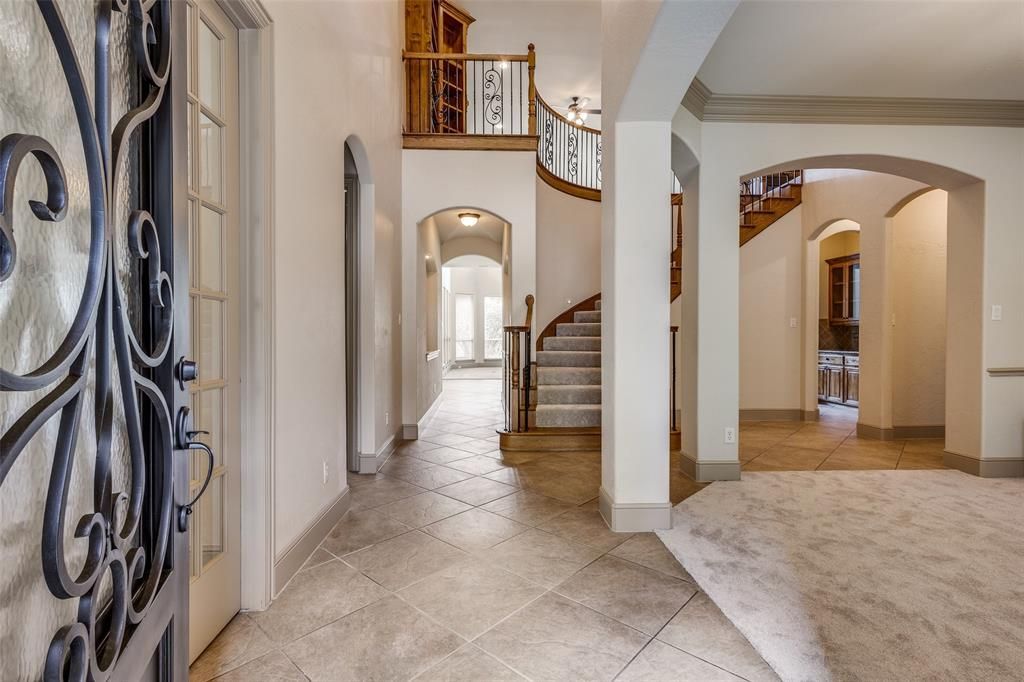 Step into this elegant home showcasing a dramatic curved staircase, formal dining room with a butler’s pantry, a private office with French doors, a guest bedroom with full bath, and a media room complete with a wine bar and wine cooler downstairs off the kitchen area. The expansive open family room features a stunning floor-to-ceiling fireplace and a wall of soaring windows that flood the space with natural light.The gourmet kitchen is truly a chef’s dream, offering an oversized gas range, double ovens, pasta pot filler, vegetable sink, warming drawer, built-in refrigerator, and a spacious walk-in pantry. Overlooking the family room, the kitchen also boasts a large curved breakfast bar. The adjoining breakfast area includes a built-in desk with cabinetry and overlooks the covered back patio.The oversized primary suite is a luxurious retreat featuring separate vanities with stamped copper bowl sinks, custom cabinetry, an oversized double-head shower, Jacuzzi tub, and two walk-in closets.Upstairs, the elegant staircase leads to a large open game room and adjacent flex space with access to a balcony. One bedroom and full bath complete this wing, while two additional bedrooms are split across the game room and share a Jack-and-Jill bath.Elegant, fresh, and move-in ready—this exceptional home is ready to welcome its new owners.