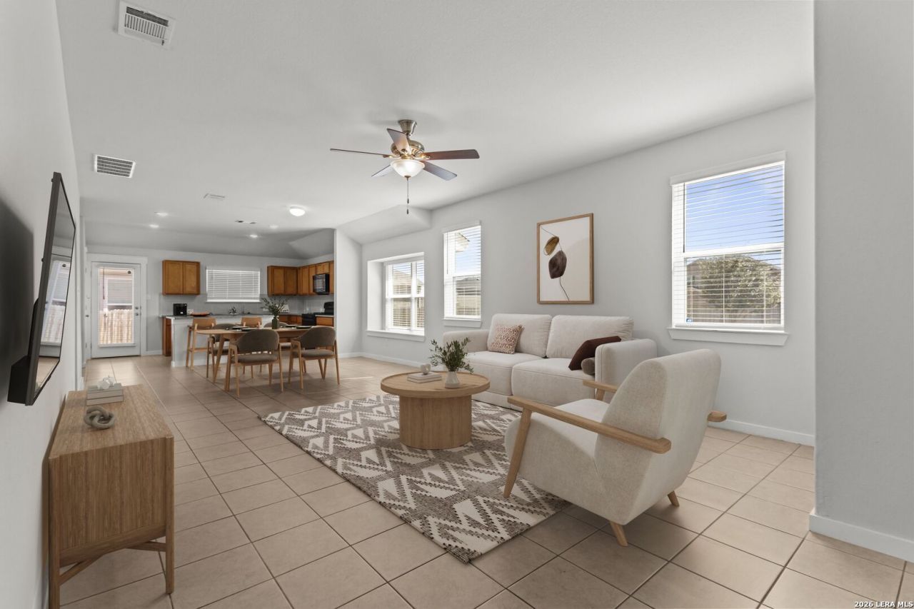 Welcome to 4837 Park Glen in Marion, Texas, a beautifully maintained 2019 home offering 4 bedrooms, 3 full bathrooms, and 1 half bath with a layout designed for both comfort and functionality. From the moment you walk in, you will notice the spacious open concept living and kitchen area, perfect for everyday living and entertaining. The large living room flows seamlessly into the kitchen, which features granite countertops, ample cabinet space, and a generous island ideal for gathering with family and friends. Natural light fills the space, creating a bright and welcoming atmosphere. The primary suite is conveniently located on the main level, providing privacy and ease of access. The en suite bathroom includes a large walk in shower and plenty of space to start and end your day comfortably. Upstairs, you will find additional bedrooms along with a versatile loft and bonus room that can easily serve as a game room, media space, or home office. Step outside to enjoy one of the largest lots in the neighborhood. The expansive backyard is fully fenced and offers plenty of room for pets, play, or future outdoor additions. Located in Marion with quick access to San Antonio, New Braunfels, and Austin, this home offers the perfect balance of peaceful neighborhood living and city convenience. This one family owned property is ready for its next chapter and for you to make it your own.
