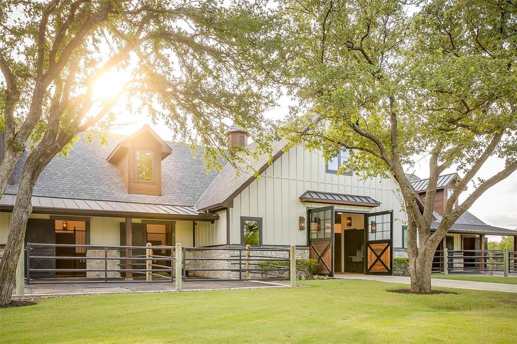 Welcome to TK Trails — a private, legacy-caliber equine estate offering 5.5± acres of luxury, seclusion, and unmatched access to the natural beauty of North Texas. Surrounded on three sides by federally owned, Army Corps of Engineers–managed land along the shoreline of Lake Grapevine, this setting is rare, protected, and irreplaceable. With gated access into thousands of acres of preserved parks, wildlife habitat, and miles of riding and hiking trails, TK Trails blends complete privacy with boundless outdoor freedom. At the heart of the property stands a fully custom, state-of-the-art barn and covered arena — purpose-built for performance, yet crafted with the detail of a fine estate home. Chandeliers, stamped concrete alleys, climate-controlled tack and medical rooms, and thoughtfully designed stall systems reflect unmatched attention to quality and functionality. A beautifully appointed 1-bedroom, 1-bath apartment provides quiet, private accommodations for a trainer, caretaker, or guest, with sweeping views of both the barn interior and arena. Beyond its equestrian excellence, TK Trails offers gated entry, concrete drives, irrigated paddocks, pipe fencing, two wells, and a serene pond — creating a property that is both functional and luxurious. What truly sets TK Trails apart is its location. Few properties in North Texas enjoy this level of adjacency to Corps land — and fewer still offer private keypad access to miles of protected shoreline trails along Lake Grapevine. All just 13 miles from DFW International Airport, 5.5 miles from Southlake Town Square, and 5 miles from the exclusive Vaquero Club. TK Trails is more than an equestrian estate — it is a once-in-a-generation offering, a sanctuary of space, security, and purpose-built luxury destined to be treasured for years to come.
