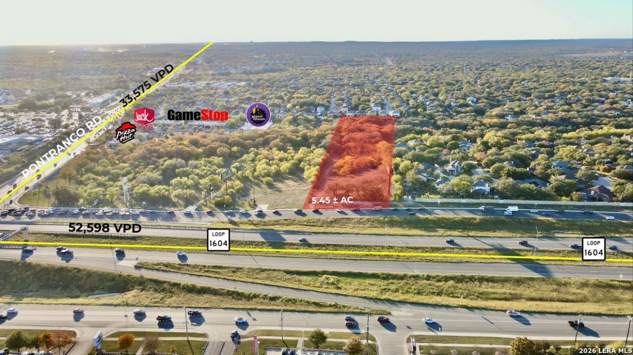5.45 acres on N Loop 1604 in San Antonio, TX. Located on the booming northwest side and perfectly situated on Loop 1604, this property offers investors or developers the flexibility to develop different asset classes. Zoned C3 with 221 LF of frontage, water on site, and sewer available, this property is ready to be developed - the perfect site for any retail use, car lot, office, or stand-alone building.