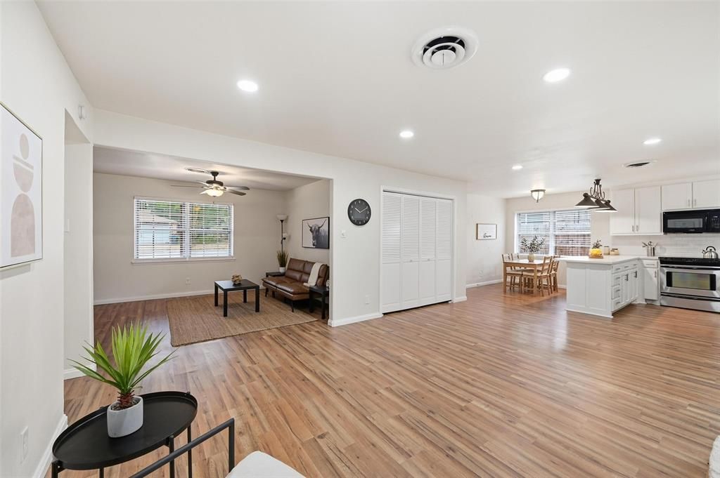 This Charming 3-bedroom, 2-bath home sits on an oversized lot just minutes from downtown Fort Worth! Walking into this spacious open floor plan, living area, and freshly redone fireplace. The eat in kitchen is fully updater with beautiful countertops and decorative lighting and boasts all stainless steel appliances. The sliding glass door open up to a massive backyard where you can let you imagination soar. Pool? Outdoor entertaining venue? The possibilities are endless. The Primary bedroom is spacious enough to add a sitting area or small office nook. Don't miss out on this amazing opportunity to own your own piece of Texas.