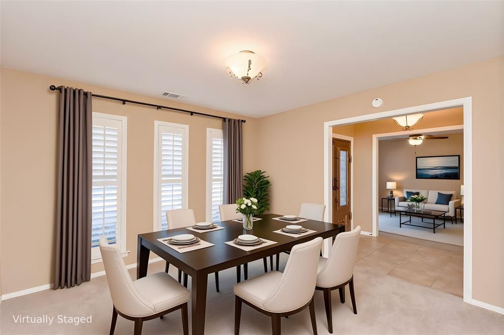 This spacious and thoughtfully designed home offers a flexible layout ideal for everyday living and entertaining, and welcomes you through custom iron front doors. Upon entry, a versatile room on the left provides the perfect space for a home office, study, or flex room. On the opposite side of the foyer, a formal dining room offers an inviting space for hosting meals and special occasions. The gourmet kitchen is conveniently located nearby and features a gas cooktop, double oven, and ample cabinetry, with easy access to the laundry room and rear entry.The main living room serves as the heart of the home, featuring a beamed ceiling, a wet bar, and direct access to the rear patio, creating an ideal setting for gatherings and indoor-outdoor living. Adjacent to the living room, the breakfast nook offers a casual dining space with views of the backyard.The private primary suite is tucked away and features a spacious bedroom with direct access to the rear patio. The remodeled primary bath includes separate vanities, his-and-her closets, a freestanding soaking tub, and a walk-in shower positioned between the dual vanities.Well-sized secondary bedrooms are thoughtfully positioned throughout the home, with a guest room or 4th bedroom located across the floorplan for added privacy. Wired bidet toilet seats are installed in each bathroom.Step outside to a true backyard oasis, where the rear patio opens to an inground pool surrounded by a privacy fence. The outdoor space also includes a turfed dog run. Additional highlights include custom plantation shutters throughout and a 2-car attached garage with rear entry. This home delivers both function and flexibility for a variety of lifestyles.