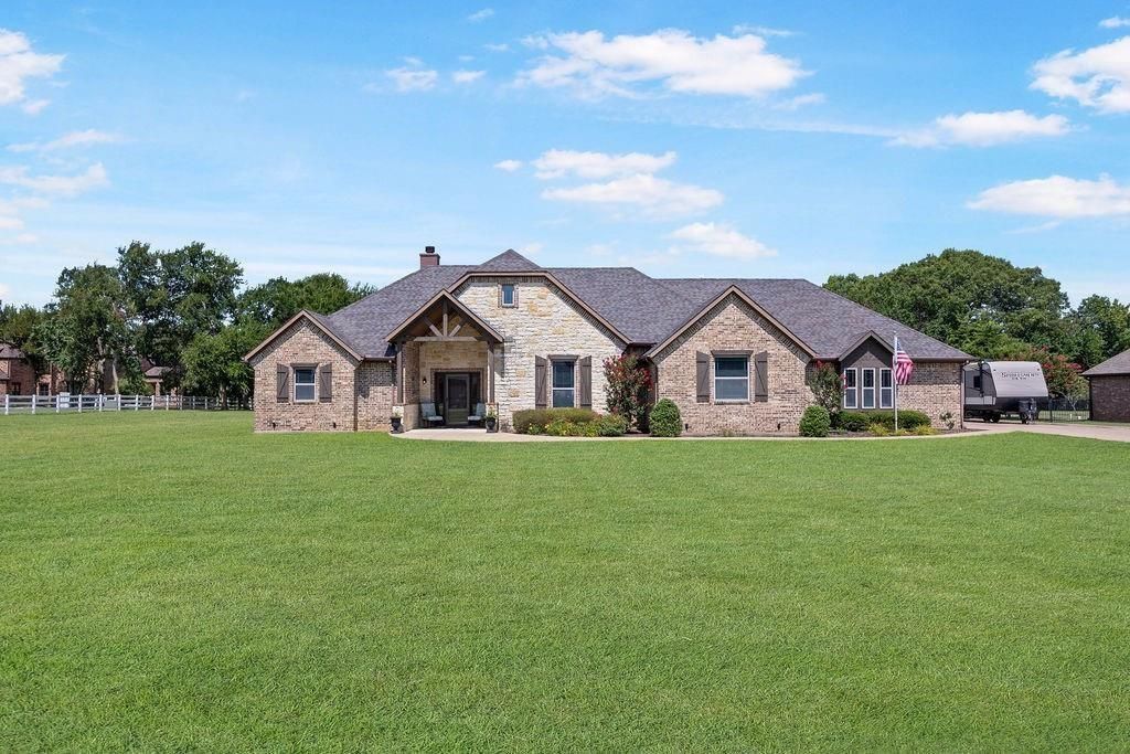 Beautifully crafted custom home set directly on the water in one of Gunter’s most peaceful and private communities. From the moment you arrive, this property blends luxury, comfort, and natural beauty with the rare opportunity to live in the coveted Hidden Lakes Ranch. Located on a cul-de-sac, this thoughtfully designed home features warm, inviting architecture, including built ins, a hidden safe closet with bookshelves, en-suite baths, an tons of storage. Third car garage is perfect for a workshop or extra storage. The large back porch with newly installed tv is the best place to be in the mornings or evenings. Large private primary suite, and an open-concept layout that feels both elegant and livable. Flexible second living room with built-ins and a desk is the perfect flex space for your needs. The heart of the home offers a spacious chef’s kitchen with new appliances, generous living area with a statement fireplace and built-ins, and seamless indoor-outdoor flow—perfect for quiet mornings overlooking the water or hosting large gatherings. Thoughtful design includes storage in laundry and halls, walk in closets, built in bookshelves are the perfect touch! Step outside to your own slice of Texas countryside!Wide-open skies, mature trees, sprawling acreage, and steps away from the water. The property offers plenty of space for a shop, barn, pool, or future expansion, giving you room to grow and dream. No city taxes!Nestled inside the Hidden Lakes Ranch community, this home delivers the rare combination of privacy, acreage, and water access while still being only minutes from Celina, Sherman, Van Alstyne, and major corridors to DFW.A truly special custom-built, beautifully maintained, and ready for its next chapter.