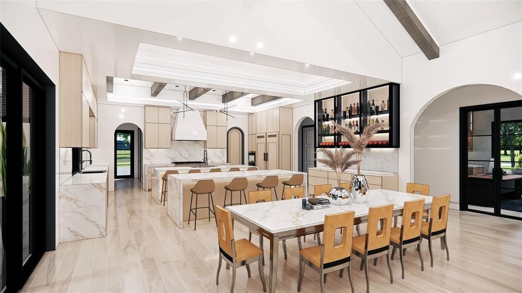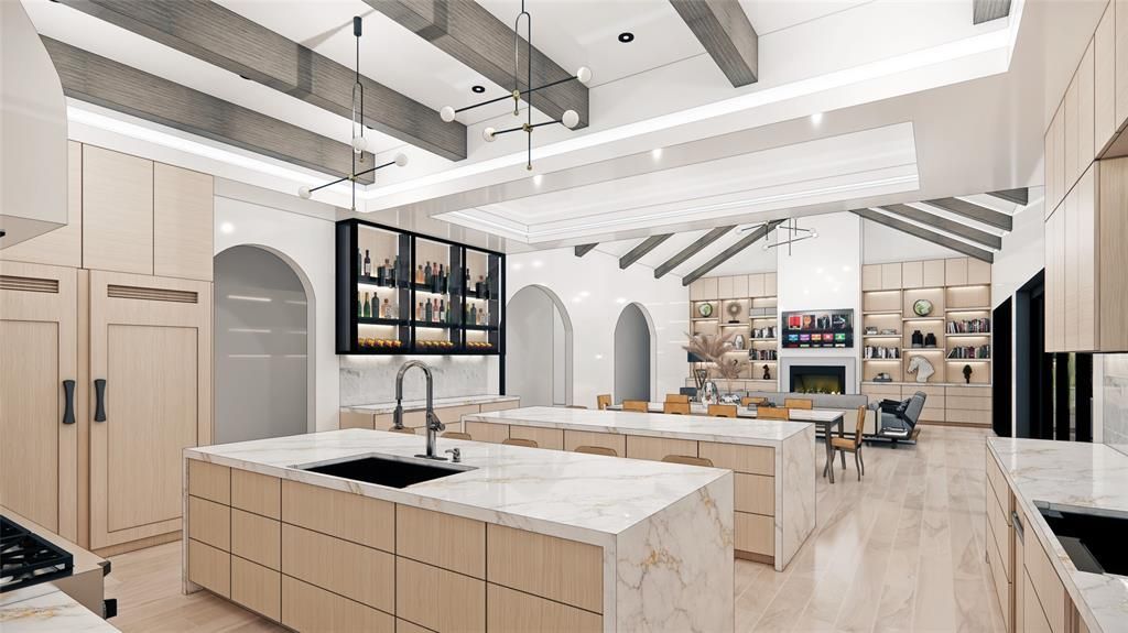 Scheduled for completion in Summer 2026, this one story transitional estate by JBM Custom Homes is designed to be experienced, not just seen. From the moment you step inside, graceful full radius arches draw you forward into a breathtaking living space where 30 foot vaulted ceilings soar overhead & a gas fireplace creates a warm, inviting focal point. Natural light fills the home, highlighting the thoughtful craftsmanship & effortless flow from room to room. At the center of the home, the kitchen becomes a place to gather. Quartz countertops, two expansive 10 foot islands with dual sinks, & a panel ready built in Z Line refrigerator make both everyday living & entertaining feel seamless. Just beyond, a walk in butler’s pantry with an additional refrigerator, sink, & ice maker keeps everything perfectly organized & out of sight. The primary suite is a true retreat, offering its own vaulted ceiling, a quiet sitting area, & a spa inspired bath with a freestanding soaking tub & oversized walk in shower. The impressive 330 square foot closet, complete with dual islands, feels more like a private boutique than a closet. Four additional bedrooms each feature ensuite baths & walk in closets, while a study with built in cabinetry & a media room with wet bar provide spaces to work, unwind, & entertain. Outdoor living is just as intentional, with a covered patio featuring a gas fireplace, TV wiring, & a built in outdoor kitchen designed for evenings under the stars. Built with 2x6 framing, spray foam insulation, natural gas throughout, EV charging, advanced AV wiring, whole home surge protection, Aerobic sewer, & premium Delta plumbing fixtures, this home blends luxury, comfort, & modern efficiency. A two car garage, separate one car garage, & porte-cochère, this exceptional home is ready to be your future.