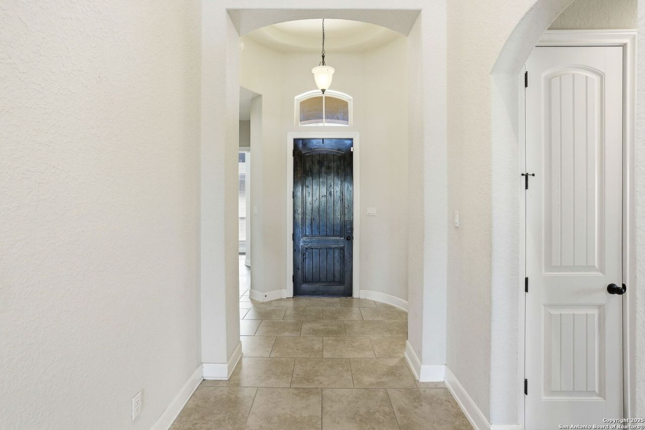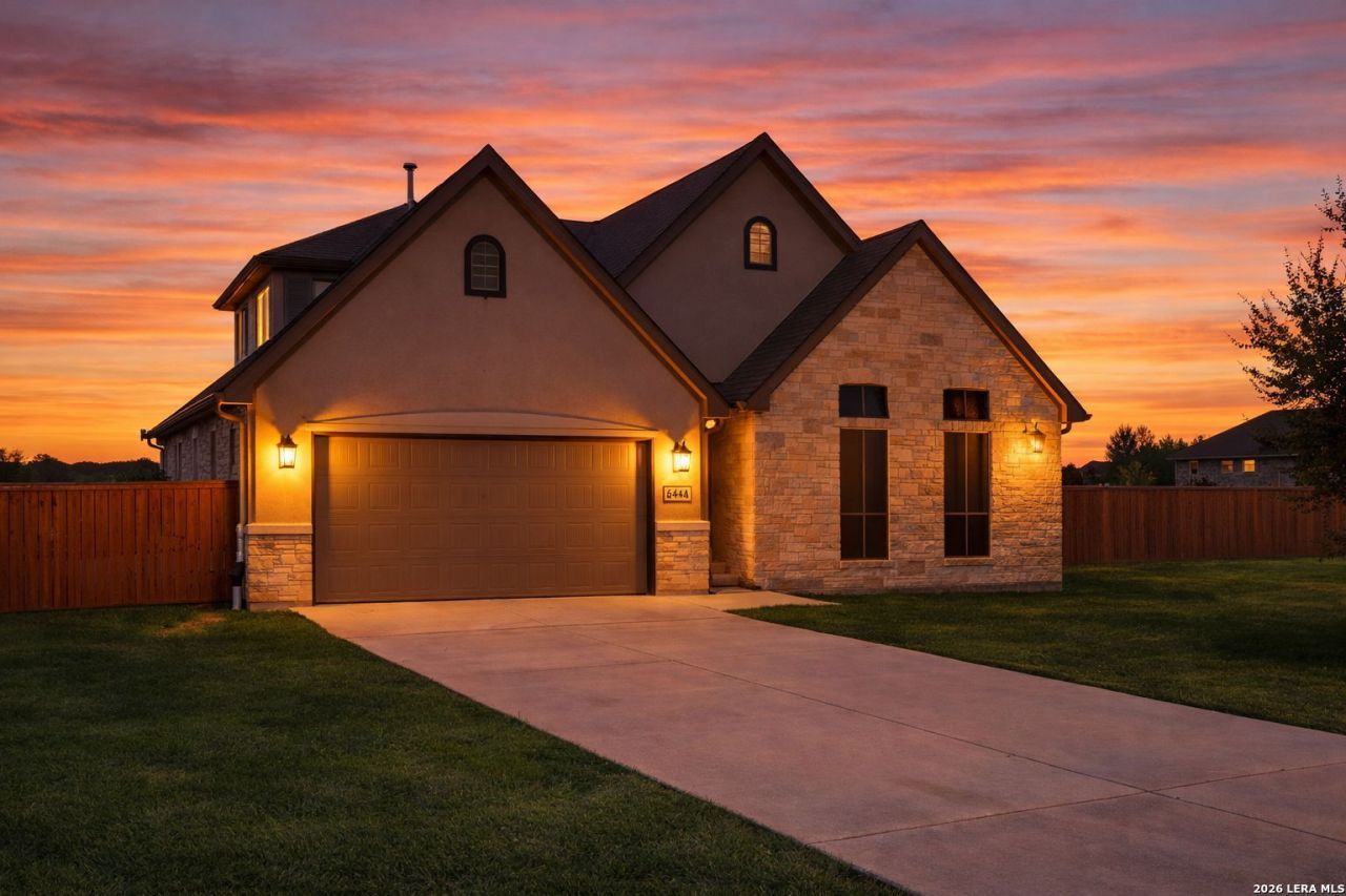 Welcome to this stunning 1.5-story home in San Antonio-a rare find offering 5 bedrooms, 4 full bathrooms, a large game room, and over 3/4 acre of space to enjoy. Conveniently located near Randolph Air Force Base, this home is an excellent option for buyers searching for San Antonio military homes, planning a PCS to San Antonio, or exploring VA loans in San Antonio. Step inside to an inviting entry with soaring ceilings and a formal dining room accented by elegant tray ceilings and abundant natural light. The open-concept main living area features beautiful wood flooring, a cozy corner fireplace, and effortless flow into the kitchen-perfect for everyday living and entertaining. The kitchen is designed for both style and function with granite countertops, a wide breakfast bar, recessed lighting, and an eat-in dining area overlooking the backyard. The spacious primary suite feels like a private retreat with tray ceilings, dual vanities, a soaking garden tub, separate shower, and a huge walk-in closet. Outside, enjoy an oversized patio, a sprawling private yard, and custom JellyFish lighting that adds year-round ambiance and standout curb appeal. Super clean and loaded with upgrades, this property truly checks every box-space, comfort, and an unbeatable location near Randolph AFB, shopping, and dining. Schedule your showing today and ask about the assumable VA loan opportunity.