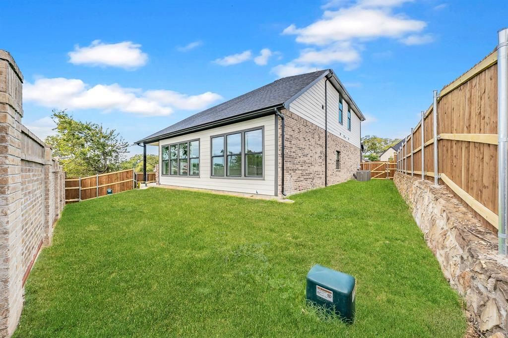 THE QUALITY IS BUILT For you , Welcome to your dream home! This beautiful, new construction one-story residence combines modern design with exceptional functionality. Boasting stunning curb appeal, the handsome stone and brick façade invites you inside. Upon entry, you’re greeted by a stylish, open-concept floor plan that flows seamlessly throughout. The heart of the home is the expansive living room, featuring high ceilings and a striking electric fireplace that creates a cozy ambiance. Bathed in natural light, the interior showcases a trendy neutral color palette that complements any décor. The chef’s kitchen is a true delight, equipped with crisp white cabinetry, a spacious island, stainless steel appliances, and a generous walk-in pantry for all your storage needs. Step outside to the large covered patio, perfect for entertaining or relaxing, and enjoy the privacy of your fenced backyard. This stunning new construction home is move-in ready—don’t miss the opportunity to make it yours! and enjoy looking at the park and water from your backyard