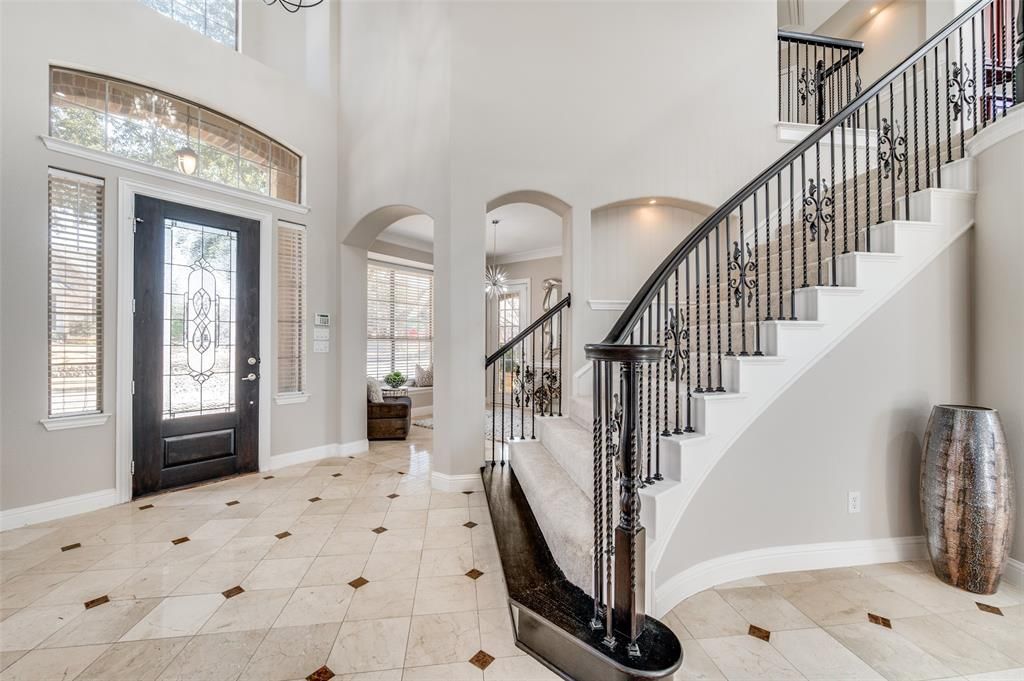 Welcome to luxury living at Shady Point. Nestled on a corner lot, this custom residence impresses immediately with a grand staircase, soaring ceilings, and stunning travertine flooring.The light-filled, expansive floor plan is an entertainer's dream. A formal dining room and living area share a striking fireplace. A comfortable sitting area transitions seamlessly into the family room, which captures breathtaking views of the spectacular outdoor pool and spa through a massive wall of windows.This masterfully planned home offers exceptional first-floor living, featuring a private Primary retreat and a second bedroom or study with an ensuite bath, ideal for guests or a home office.The second story is dedicated to family and recreation, with three additional generous bedrooms, an expansive media room, a versatile workspace, and a large game room that opens to an outside sitting area. Further enhancing entertaining, a dramatic spiral staircase leads from the upstairs balcony directly down to the private pool and spa oasis.The resort-style backyard features a spacious covered patio and grilling area, perfectly framed by the family room's wall of windows, overlooking the large pool. A separate, tranquil patio oasis is tucked away adjacent to the study and second bedroom for peaceful relaxation. Shady Point represents the best in custom luxury living.Recent updates include new carpet, paint and lighting througout.Enjoy nearby Arbor Hills Nature Preserve, top-rated Lewisville ISD schools, and effortless access to 121 and the Dallas North Tollway—the perfect blend of prestige and convenience.