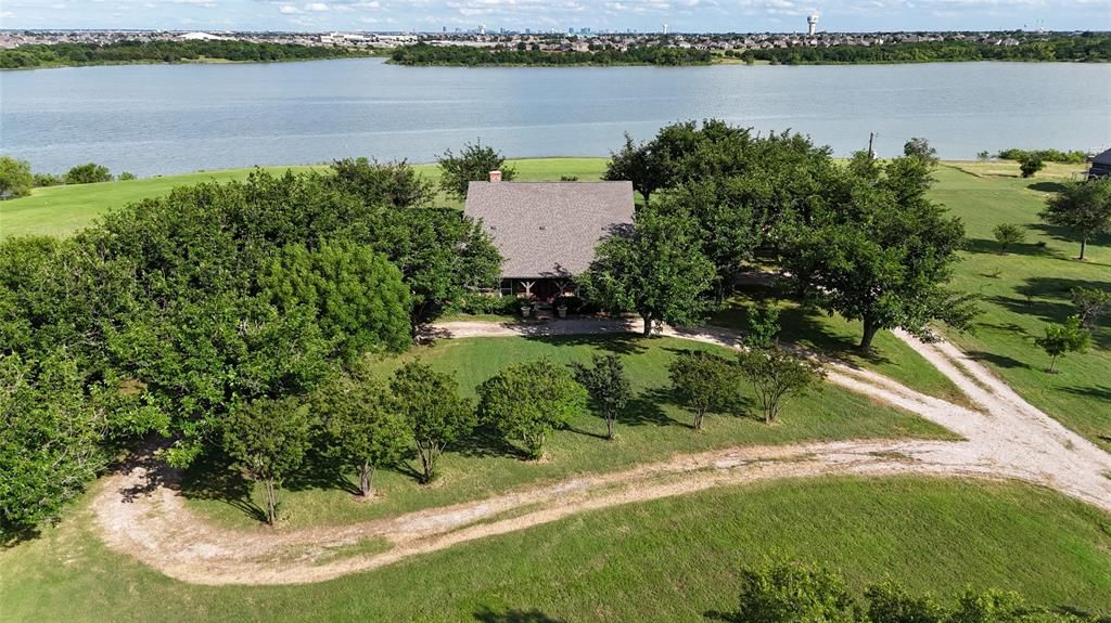 Experience breathtaking views of Lake Lewisville from this secluded 2.48-acre estate, minutes from the Dallas North Tollway, PGA Headquarters and the planned Universal Theme Park in Frisco! This 5-bed, 4-bath home features an open floor plan with bay windows and an upper-level guest suite highlighting the panoramic views of natural beauty. The manicured lawn with ample shade trees provides the perfect setting for relaxed lakeside living, boating, fishing and outdoor gatherings. This enchanting location is your perfect oasis, blending the tranquility of country life with city convenience!