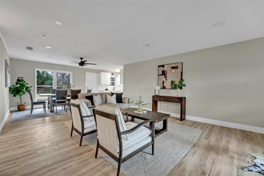Beautifully updated 3-bedroom, 2-bath home located in a quiet neighborhood within Fort Worth ISD. This home showcases modern, chic finishes with new flooring throughout and a beautifully open-concept living room and kitchen featuring white shaker cabinets, new stainless steel appliances, a breakfast nook, and a dining area—perfect for everyday living and entertaining. Both bathrooms have been updated with new backsplash and tile work. Situated on a nicely sized lot with a large backyard and conveniently located just minutes from I-20. Don’t miss this exceptional opportunity!