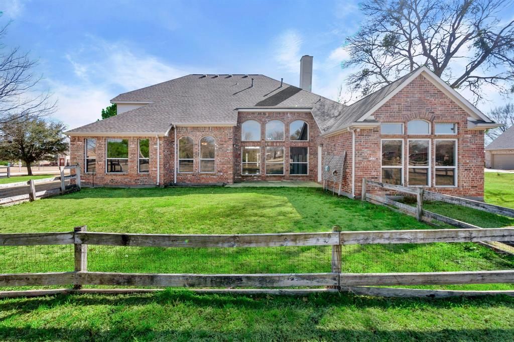 Enjoy estate living in the country! This pristine home in the desirable Lakeview Ranch is ready for move-in! Walls of windows everywhere offer an abundance of natural light and appealing views of the outdoors. A lovely covered front porch both welcomes you and has room for you to sit and watch the world go by. The wide tile entry hall opens to elegant formal dining on the right and an office with built-in bookcases & French doors on the left. Straight ahead is the great room with fireplace, which is open to the sunny breakfast room and spacious kitchen - ideal for entertaining crowds or just relaxing. The kitchen features an island, loads of counter & cabinet space, gleaming granite counters, and large pantry. To the right of the breakfast room is a flex room - perfect for workouts or second office. All bedrooms are downstairs with a 3-way split bedrooms, giving this home multi-generational possibilities. Primary bedroom has a private exit to the back patio; primary bath has jetted tub, separate shower & vanities and large closet. Two secondary bedrooms share a hall bath; 4th bedroom is near the kitchen on the other side of the house and has its own bathroom. This home includes a large utility room; a mud room large enough to be used as a crafts room; and a large game room upstairs with built-in desks and a bathroom. An additional half-bath is in the hallway off the great room. The side-entry 3-car garage includes a pull-down attic stair with plenty of storage in the attic. A fenced area in back is available for your garden or small pets. HVAC unit replaced in early 2026.