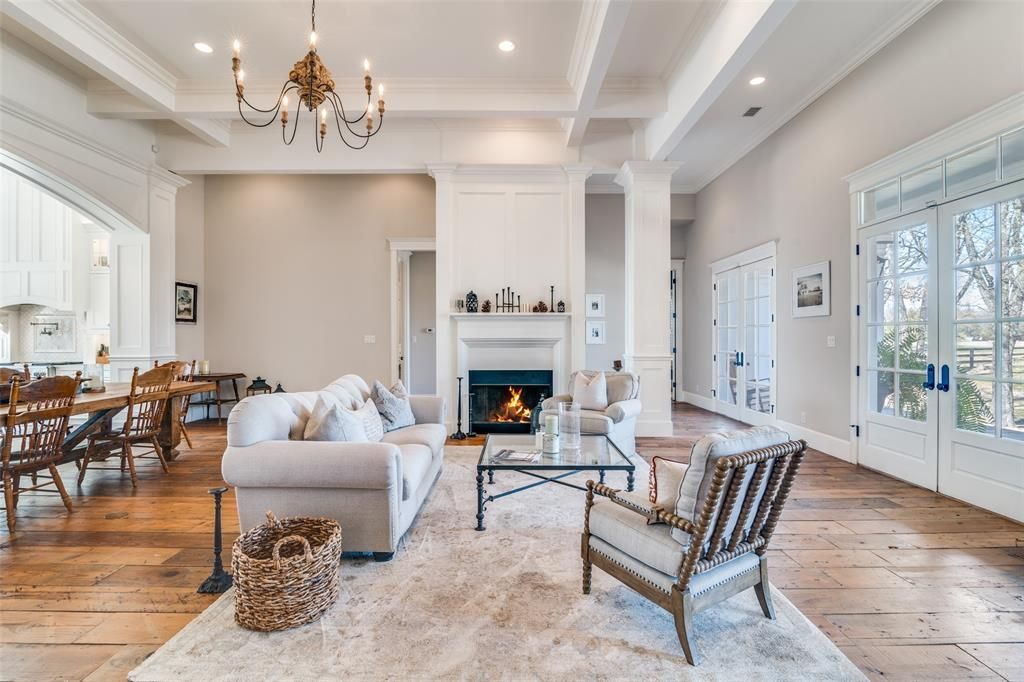 Custom built in 2018 on nearly 5.5 acres of wooded land, this extraordinary estate showcases a level of craftsmanship & design worthy of the pages of Architectural Digest. A long, scenic drive welcomes you to the main residence, where a charming front porch sets the tone for the elegance within. Inside, the expansive living area is designed for both grand entertaining & intimate gatherings, featuring a stunning fireplace, thick moldings, stately columns, high ceilings, & 3 sets of double doors that open onto the front porch. Reclaimed wood floors flow throughout, infusing warmth & character into the home’s refined aesthetic—where Old World charm meets modern luxury in timeless harmony. Two bedrooms share a beautifully appointed Jack&Jill bath. A third bedroom enjoys access to a spacious hall bath distinguished by its curved wood-paneled ceiling & abundant storage. The primary suite offers a serene retreat, highlighted by a cozy reading nook with built-in bench seating & custom shelving. The spa-inspired ensuite bath features a soaking tub, oversized shower & custom sauna—creating a true sanctuary experience. An additional living room with built-in cabinetry offers flexible use as a study, media room, or playroom. The gourmet kitchen is both elegant & functional, offering a large eat-in island, corner breakfast nook, premium appliances, & sink overlooking the tranquil backyard through a wall of windows that bathes the space in natural light. The expansive laundry room doubles as a thoughtfully designed utility space, complete with a dog wash, desk area, & plentiful cabinetry. Off the kitchen, a screened porch provides a peaceful setting to relax & unwind. A detached garage includes a convenient half bath & stairs leading to a private garage apartment above, featuring a fireplace, full bath, & balcony. Completing this exceptional property are a barn with corral, chicken coop, & treehouse—offering a rare opportunity to embrace refined country living without compromise.