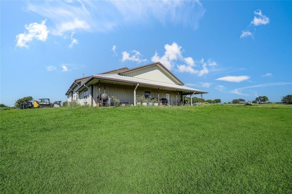 Escape the city and embrace peaceful country living on this stunning 120-acre property located just minutes from Whitesboro, Gainesville, and Denton. Whether you’re looking for a working ranch, hunting retreat, or homestead, this versatile property offers endless opportunities. Approximately 70 percent of the acreage is open pasture perfect for running livestock, cutting hay, or growing crops while the remaining 30 percent is beautifully wooded, providing excellent cover for deer and other wildlife. Hunters and outdoor enthusiasts will love the natural setting and wildlife habitat. The property also includes three ponds, one located near the front entrance and two more at the back, ideal for livestock, fishing, and scenic enjoyment. The centerpiece is a well designed barndominium featuring a spacious open-concept living area with wood floors, a large granite kitchen island, ample cabinetry, and a sizable utility room. The main floor offers two generously sized bedrooms and a full bathroom. Upstairs, you’ll find an additional bedroom and second full bath ideal for guests or family. The other half of the barndominium boasts a huge garage with enough space to park multiple vehicles, store equipment, and still have room for a workshop or hobby space. Relax on the oversized covered porch and take in the beauty of your private ranch, surrounded by rolling pastures, trees, and tranquil views. With easy access to major highways, this property offers the perfect blend of rural privacy and convenience. Whether you're building a legacy, starting a homestead, or expanding your ranching operation, this property checks all the boxes. Don’t miss this rare opportunity to own your piece of North Texas paradise!