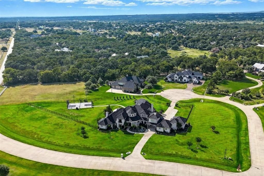 Brand New $350k Roof, Gutters, and Garage Doors! Lovely guest house! Large outdoor living spaces! Balconies for TX sunsets! Priced well with 2000 more square feet!A part of Bartonville’s prestigious Saddlebrook Estates on 2.39 acres, it blends resort luxury with a genuine equestrian lifestyle. The home offers multigenerational flexibility, with the primary suite, executive study, multiple living areas, media room, and private casita all on the main level. Natural light floods through the walls of windows, and dual staircases—including a handcrafted iron showpiece—add elegance. Five en suite bedrooms with oversized closets offer space, plus a kids’ retreat and a Juliet balcony. The chef’s kitchen features a six-burner range with griddle, double ovens, and oversized built-in refrigeration. The media room includes theater seating and a bar. The primary suite offers dual fireplaces, a spa bath with a waterfall jacuzzi, and outdoor access. A large flex space above the portico offers versatility. Car enthusiasts will love the four-car garage, extra parking pad, and portico for showcasing vehicles. The casita provides a private suite with a full bath. Outdoors, enjoy the infinity-edge pool, spa, waterfalls, outdoor kitchen, and full sports court. The equestrian lifestyle awaits with ample space for horses and direct access to riding trails. Horses are permitted, with community riding trails offering countryside charm just minutes from top schools, dining, and shopping.