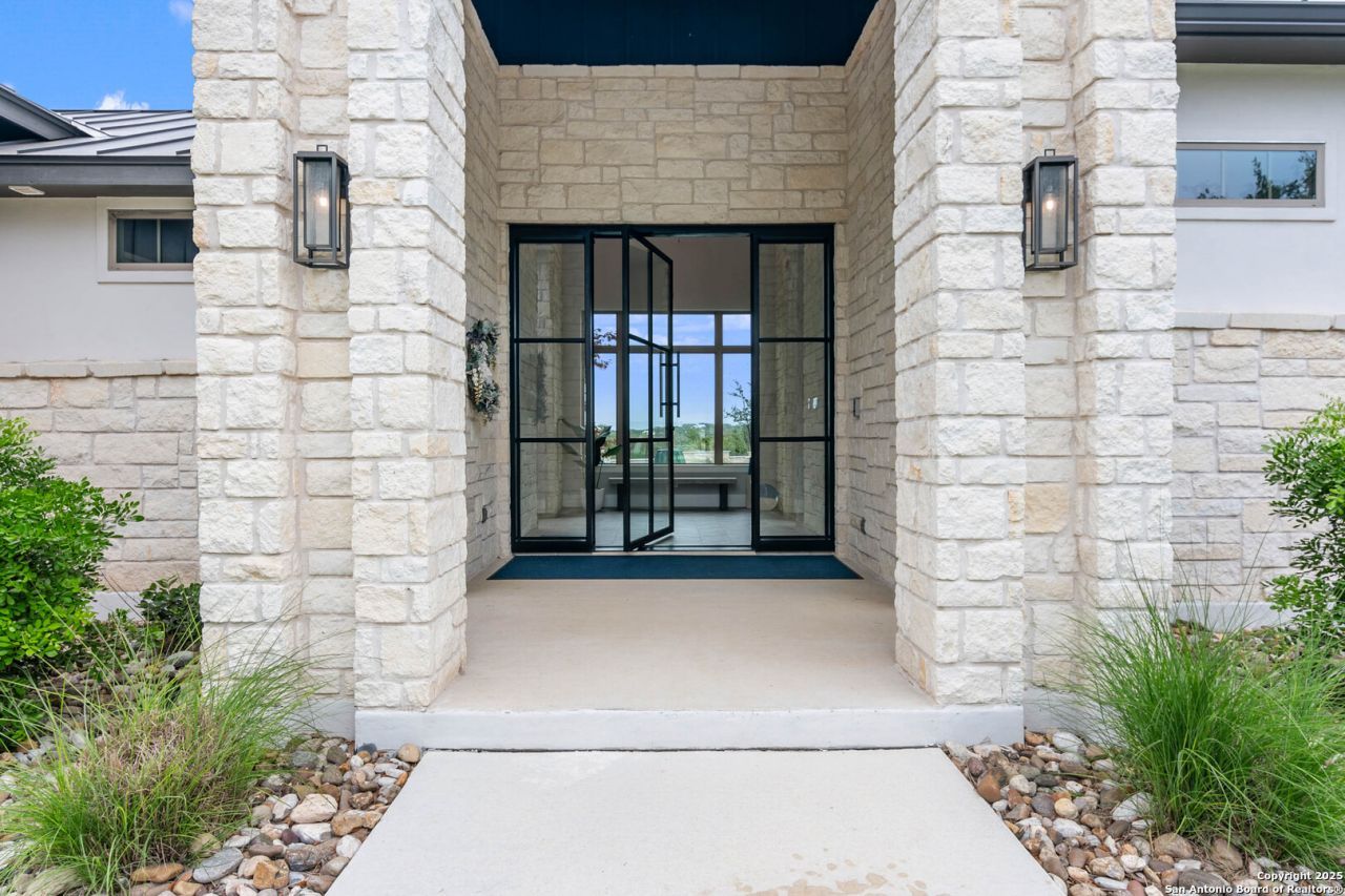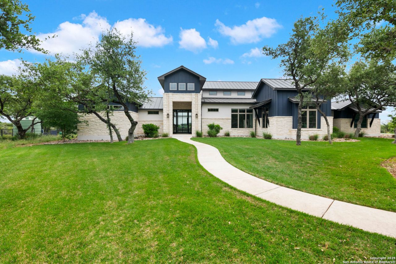 Located on 9.83 acres in Bulverde, Texas, this modern farmhouse offers privacy, quality craftsmanship, and thoughtfully designed living spaces both indoors and out. A gate code is required for entry, reinforcing the homes sense of seclusion while still providing convenient access to nearby amenities. Designed by architect Gustavo Arredondo, the home reflects careful attention to detail and a layout that maximizes comfort, function, and Hill Country views, along with a spacious three-car garage.The kitchen combines function and style with a DACOR appliance package, plenty of counter space, and custom cabinetry by Michael Edwards. The residence offers four spacious bedrooms, each with its own en-suite bath, providing privacy for both family and guests. Interior living spaces are designed for everyday comfort and entertaining, including a game room with bar and a 480-bottle wine room well suited for hosting or collecting. The primary suite serves as a private retreat, offering dual walk-in closets with ample storage. Outdoor living is a true extension of the home, featuring a covered patio with an outdoor kitchen, dining area, and fireplace, creating an inviting space for gatherings year-round. The pool includes a built-in hot tub, and the rear patio is positioned to capture refreshing breezes, offering a comfortable setting for relaxation and entertaining. Additional highlights include two brand-new air conditioning units, providing efficiency. A rare opportunity to own a private Hill Country property that delivers refined design, modern comfort, and well-planned indoor and outdoor living.