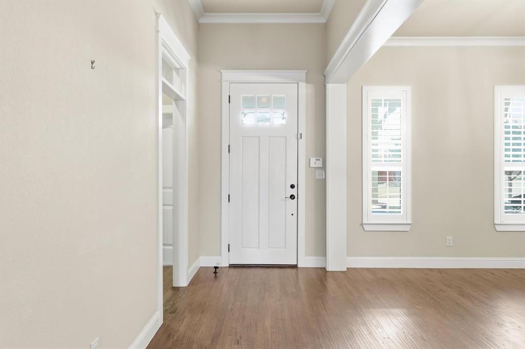 Beautiful Darling built home in the Gaillardia section of Lantana. No rear neighbors! Open floor plan features hand scraped hardwood flooring, plantation shutters, high ceilings and extra details. Large island kitchen with gas cooktop and double ovens. 3 bedrooms plus library, living and dining spaces on the first level. Large game room and half bath up. Enjoy the outdoors with your covered front porch and oversize back patio. With only 56 homes on three quiet streets, Gaillardia provides peaceful living and convenient access to all of Lantana’s great amenities, including pools, splash pad, fitness center, walking & biking trails, tennis courts, pickleball, parks, and golf. Front yard maintenance is included with Lantana homes and the schools are top-rated. Easy access to shopping and dining make this home a perfect blend of luxury, convenience and community.