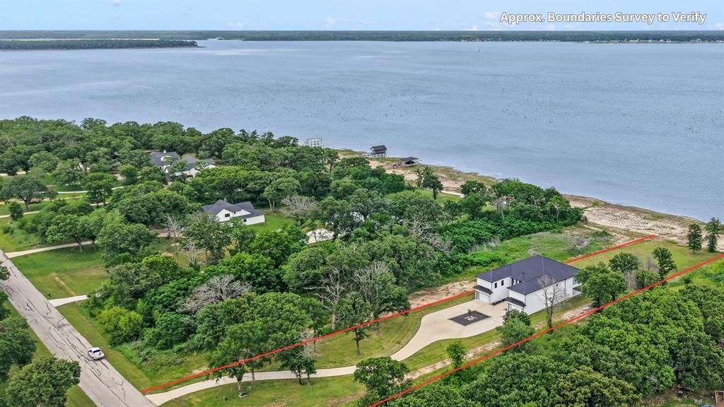 Positioned on 1.5 acres in a gated waterfront community designed for privacy, this 5,000 sq ft modern lake estate offers open water views, beautiful eastern sunrises, and a convenient 55-minute commute to Dallas. A long winding circular drive leads to the home, privately set at the end of a cul-de-sac, featuring contemporary architecture, a dramatic courtyard-style entry, and two separate two-car garages.Inside, a dramatic two-story wall of glass frames expansive lake views and brings in abundant natural light. The kitchen is thoughtfully designed with a large gathering island, double ovens, a 5-burner gas range, and an oversized walk-in pantry.On the main level, two waterside ensuite bedrooms feature wood flooring, glass doors opening to private patios, expansive tiled showers, double vanities, and generous walk-in closets—all positioned to capture open water views. An additional full bath with a large walk-in shower and exterior access is ideally suited for guests or convenient use after a day on the water.Upstairs, two additional private waterside ensuites offer an elevated retreat, each with spacious baths featuring double vanities, soaking tubs, walk-in showers, walk-in closets, private balconies, and sweeping lake views. A loft-style living area overlooking the main level provides flexible space for a second living area or game room, complemented by an additional 430 sq ft media room. An oversized 330 sq ft bonus bedroom with a walk-in closet and adjacent full bath creates an ideal bunk room or additional guest space. A buried propane tank services the kitchen range and two tankless water heaters.