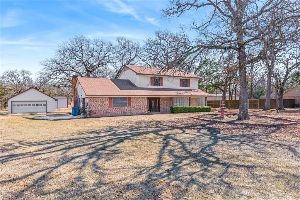 This home is ready for its new family and there is plenty of opportunity to earn your own equity. This meticulously kept home just needs to be brought forward. It has so much to offer with it's many oak trees covering the 2.24 MOL acres, a 2 car attached garage, 2 car detached workshop and its large metal building that stored the oversized RV would also be perfect for a bass or pontoon boat and it is just minutes from Lake Tawakoni. There are 2 living areas downstairs. The den has a wood burning stove and a seperate living room plus 2 dining areas and laundry room. All bedrooms and 2 of the 3 bathrooms are upstairs, primary bedroom has a wonderful balcony overlooking the backyard. Come take a look to appreciate.