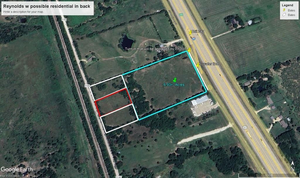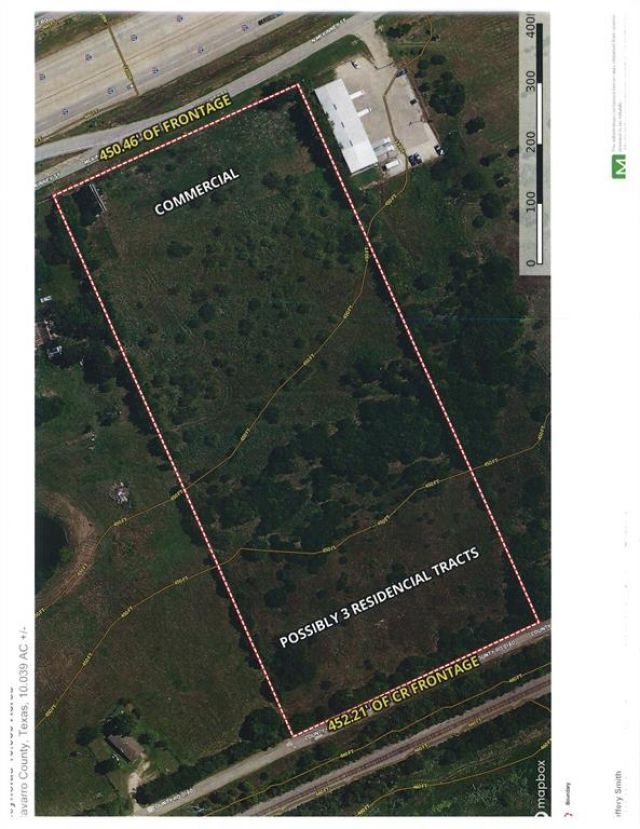 Come take advantage of one of the most northern points of the Opportunity Zone in Navarro County ON IH 45 which has lower taxes and regulations. This 10.039 acres is located on the service road frontage in IH 45 and the back has frontage on CR 0180. The IH 45 front has huge commercial possibilities and the back could potentially be split for residential development if desired. The front of the property has a 6 inch water line. There will be a large commercial access point on the NE corner of the property.