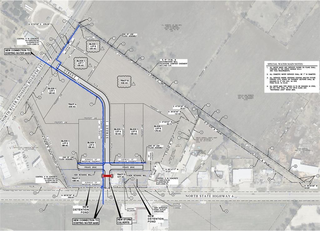 This 1.76-acre commercial development lot is out of a total 21.219-acre mixed use development and is located at the intersection of State Highway 6 and North River Crossing (FM-185), which is the center point of Waco, Woodway, China Spring, Crawford & Valley Mills along State Highway 6.This development features two (2) remaining tracts on the North River Crossing side frontage, three (3) remaining tracts on the State Highway 6 side frontage and two (2) interior lots with water & electricity to the site ready for development. One parcel has already been closed and will feature a Dollar General Market (opening July 2025) with three (3) other sites under contract as of April 2025. State Highway 6 has a daily traffic count of over 20,628 vehicles, while North River Crossing (FM-185) has a daily traffic count around 8,945 vehicles per day.